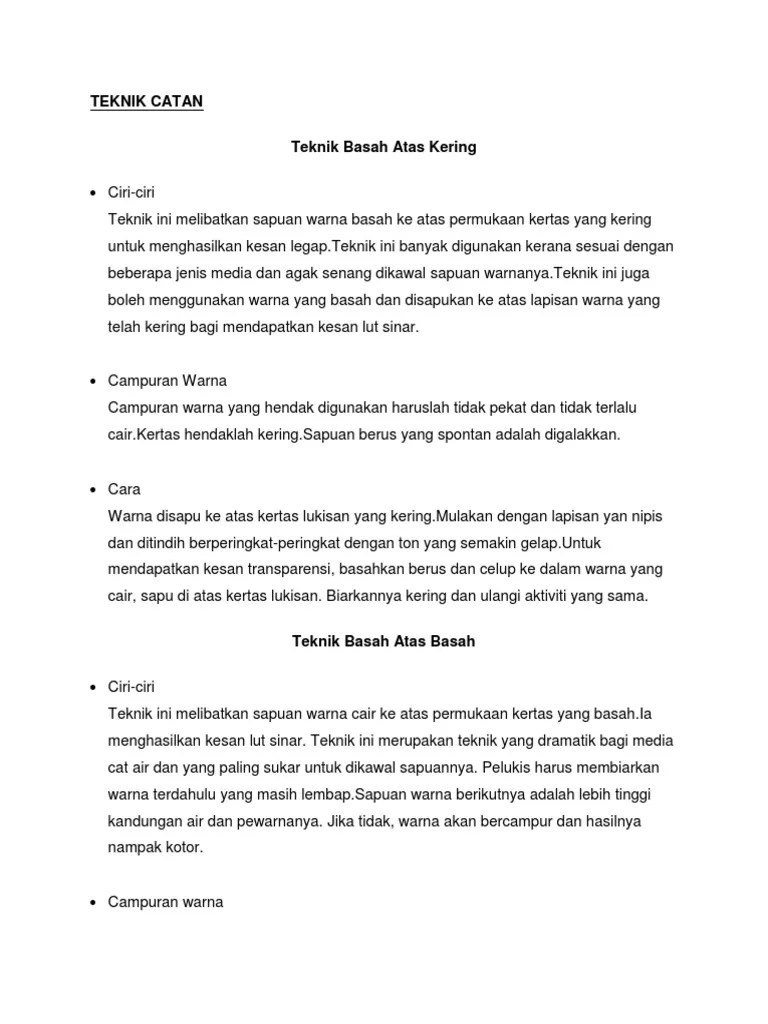 (a) warna disapu tanpa campuran air atau campuran air yang sedikit di atas permukaan yang mempunyai warna yang sudah kering. Perbezaan kaedah cetakan terletak pada bahanyang digunakan. Jangan lupa like, subscribe dan share video ini. Ini bertujuan supaya warna kedua dapat menyerap ke dalam warna pertama untuk menghasilkan tona yang menarik. Teknik seni lukis tentu sangat penting untuk menghasilkan lukisan yang.
